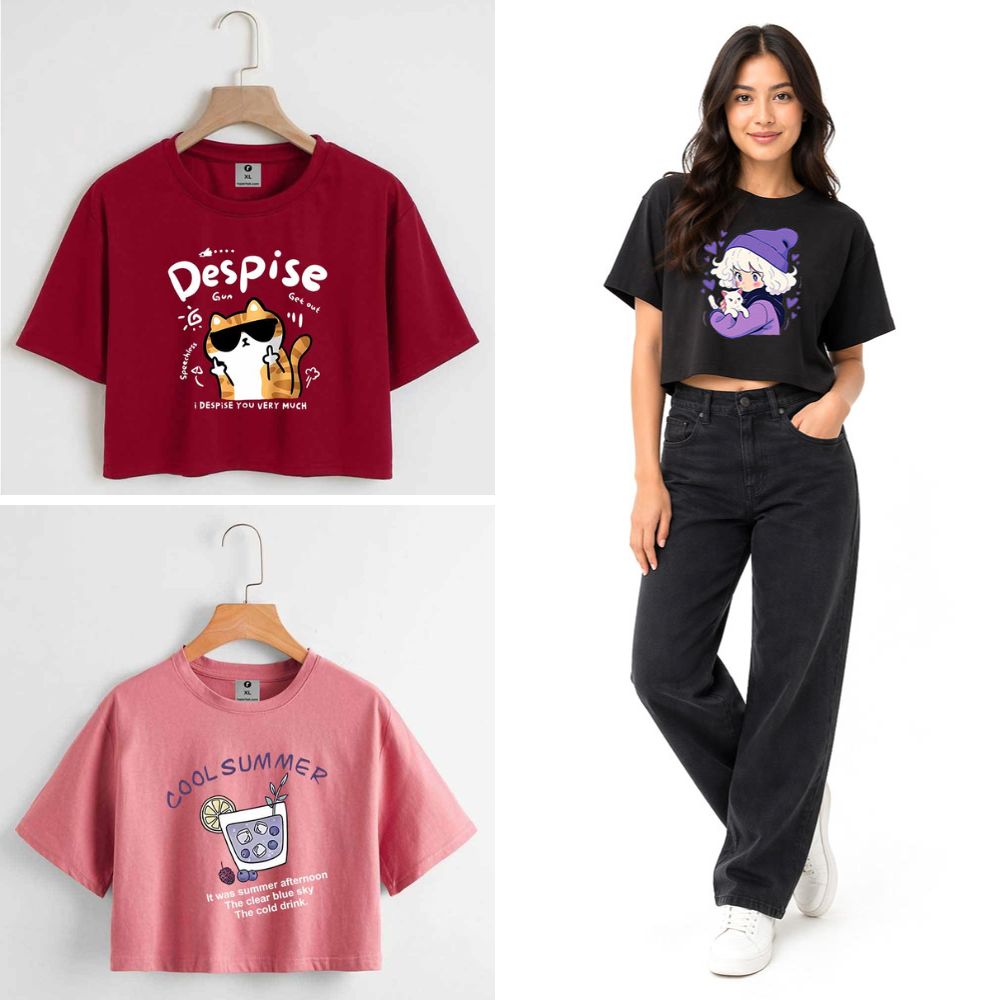 Be the first to review “3 Color Drop Shoulder Crop T-shirt Combo”
