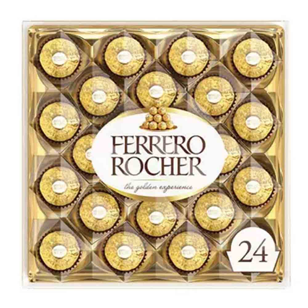 Ferrero Rocher offers a unique taste experience of contrasting layers: a whole crunchy hazelnut in the heart, a delicious creamy hazelnut filling, a crisp wafer shell covered with chocolate and gently roasted pieces.