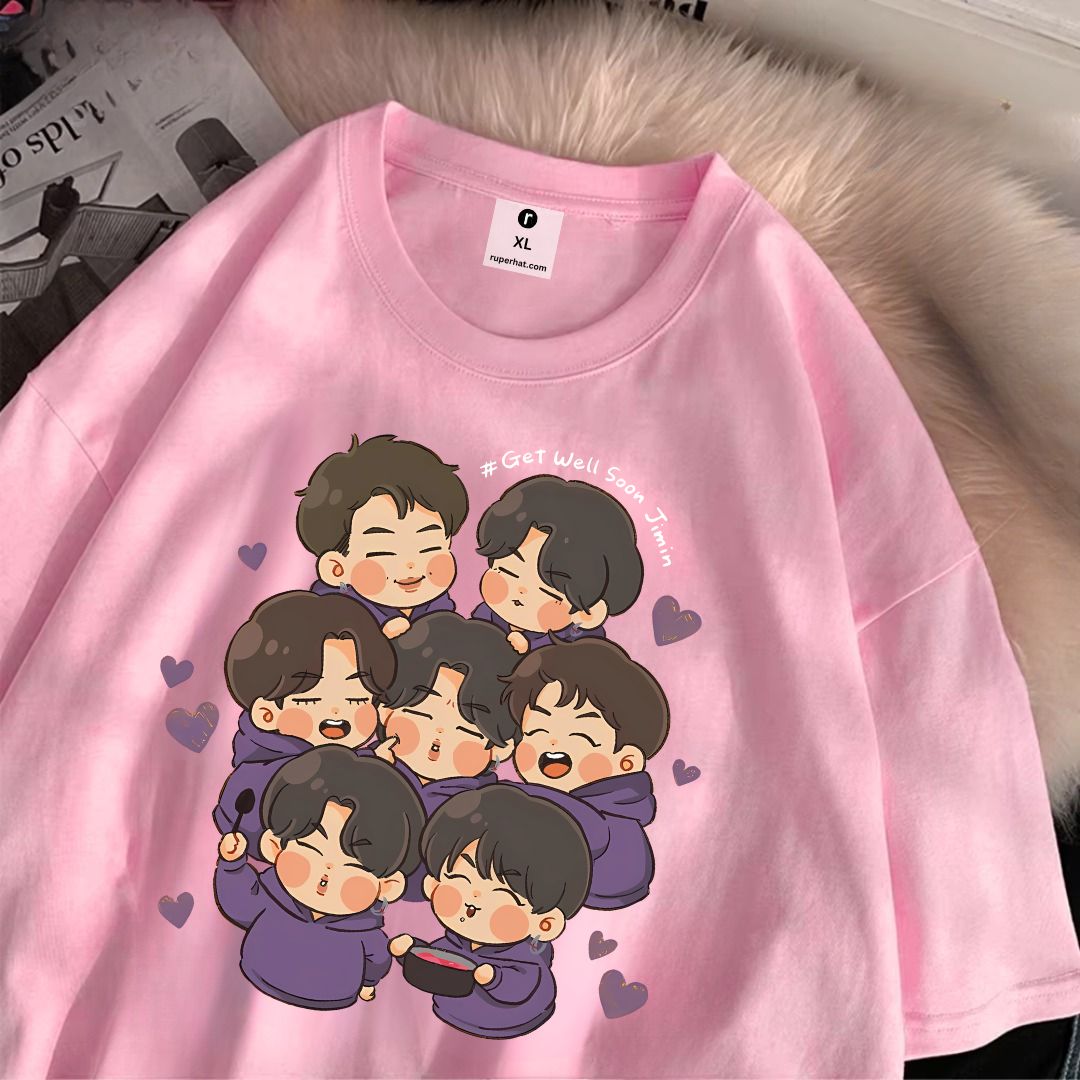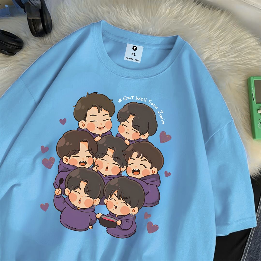- Size : To Choose the most appropriate size, please choose your size refer to the size information under the description before ordering Get well soon jimin BTS Drop Shoulder T-Shirt
