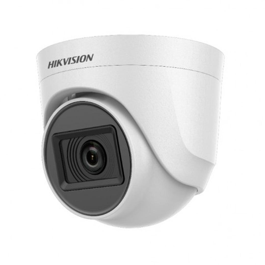 Hikvision DS-2CE76D0T-ITPF is a 2 MP Indoor Fixed Turret Diome shaped Security Camera. The Image Sensor used is a 2 MP CMOS with a PAL/NTSC signal system. The supported Resolution is 1920 X 1080 Pixels with a frame rate of TVI: 1080P@30fps, 1080P@25fps; CVI: 1080P@30fps, 1080P@25fps; AHD: 1080P@30fps, 1080P@25fps. The Minimum illumination is 0.01 Lux@(F1.2, AGC ON), 0 Lux with IR. For the Field of View, The readings are 2.8 mm, horizontal FOV: 101°, vertical FOV: 60°, diagonal FOV: 122°. It supports an M12 Lens Mount. The Angle Adjustment Pan readings are 0° to 360°, Tilt 0° to 75°, Rotation: 0° to 360°. The supported Modes include STD/HIGH-SAT with AGC, Day/Night Mode, Auto/Color/BW (Black and White), White Balance Auto/Manual, AE (Auto Exposure) Mode DWDR/BLC/HLC/Global, 2D DNR Noise Reduction, For function, it has Brightness, Sharpness, Smart IR Interface. The Infra-Red Range is Up to 20 m. The Video Output Switchable is in 4 modes they are TVI/AHD/CVI/CVBS. The General operating Conditions are -40 °C to 60 °C (-40 °F to 140 °F), humidity 90% or less (non-condensing).