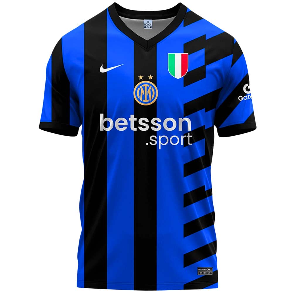 Inter Milan with the striking Inter Milan Official Home Kit – 2024/25! Featuring the club’s iconic black and blue vertical stripes, this jersey pays homage to tradition while adding a modern edge with sleek design elements and a fitted silhouette.