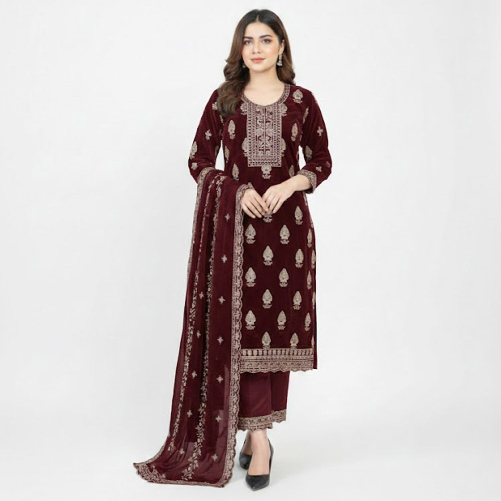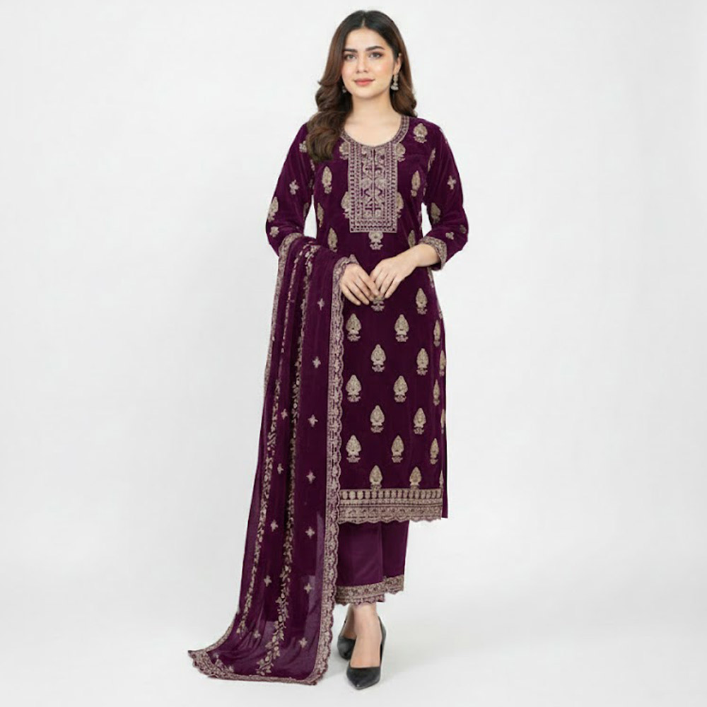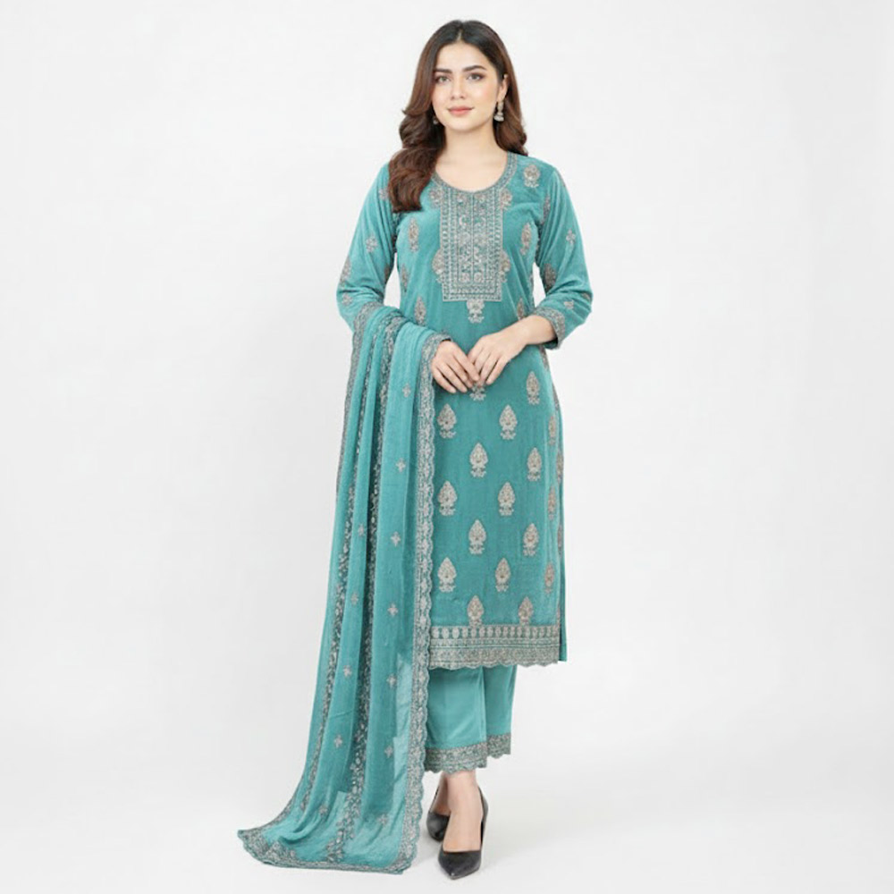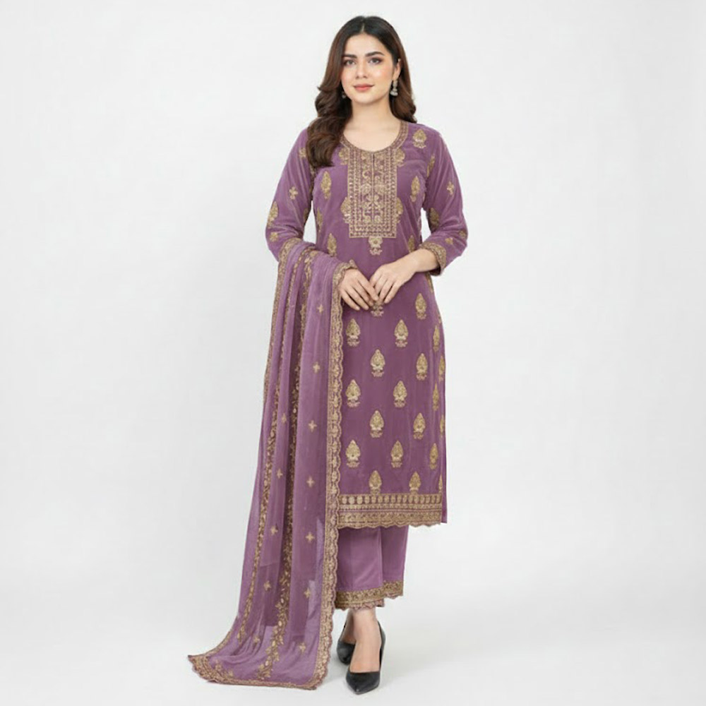 - জেমিচু কাপড় ১০০% কালার গ্যারান্টি! এমবোটারি এবং কাটচুপির কাজ করা সেলোয়ার-কামিজ ওড়না।