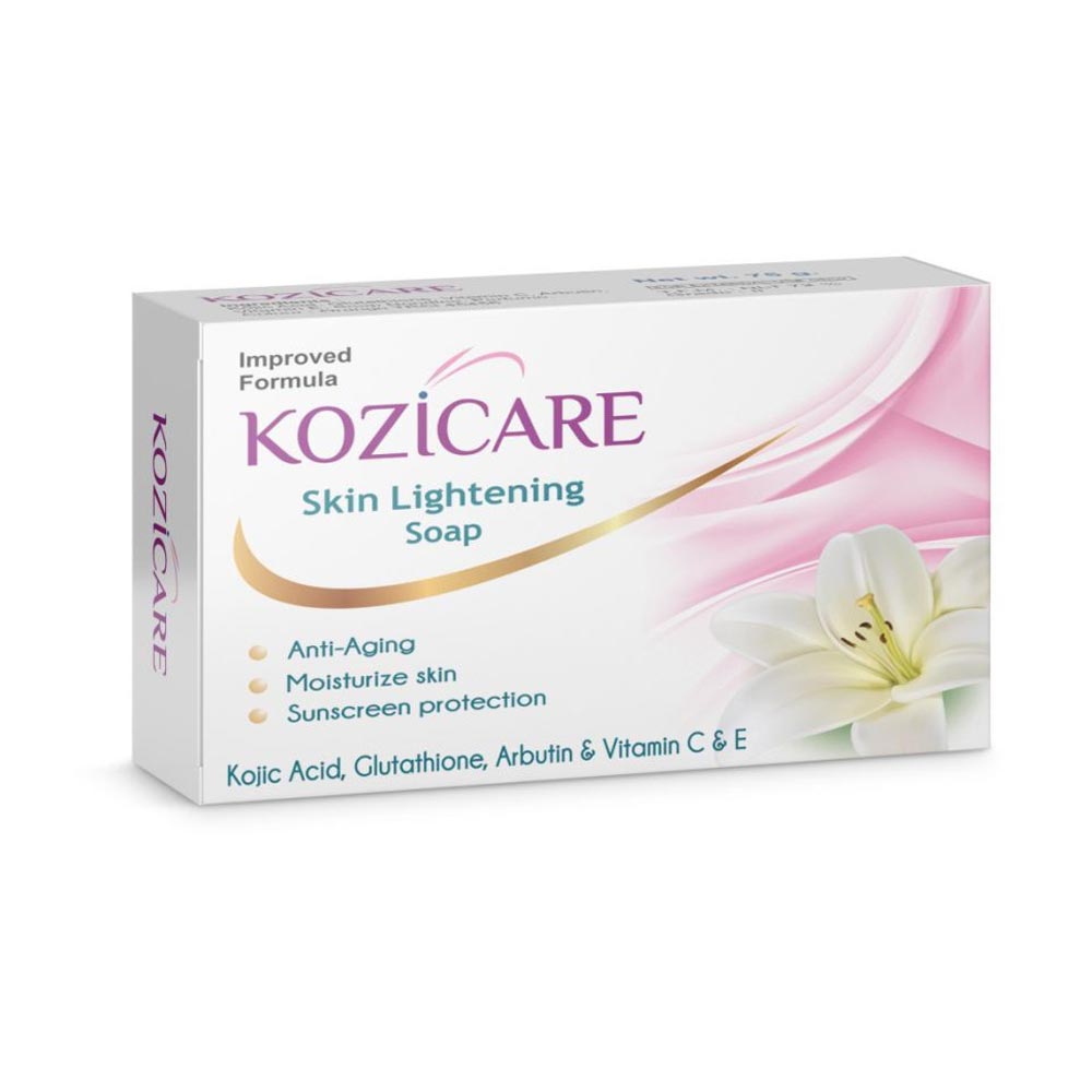 Product details of Kozicare Soap is an anti-aging, skin moisturising provides sunscreen protection. kozicare Soap helps in all types of hyper-pigmented skin. It is very powerful skin whitening product which aggressively exfoliates the top layer of the skin and gives a natural lighter skin tone.