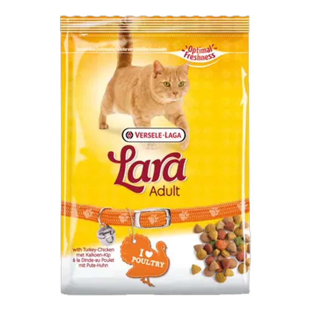 Lara Cat Food Adult Chicken Poultry offers balanced nutrition with protein, vitamins, and minerals to support strong muscles and daily vitality. Lara Cat Food Adult Chicken Poultry is a delicious, protein-rich formula designed to meet the nutritional needs of adult cats. Made with high-quality chicken and poultry, it provides essential amino acids that support strong muscles, daily energy, and overall vitality. Fortified with vitamins, minerals, and taurine, it enhances immunity, supports healthy vision and heart function, and promotes smooth digestion. The crunchy kibbles help maintain dental health, while omega fatty acids keep your cat’s skin healthy and coat shiny. With its irresistible poultry flavor, Lara Cat Food makes mealtime both nutritious and enjoyable.