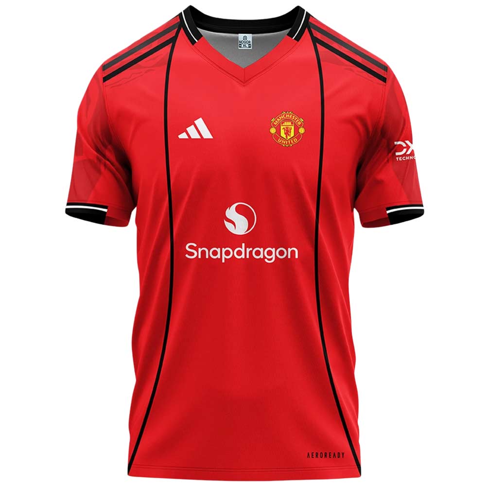 Manchester United Home Jersey with the official 2025/26, Designed for both performance and style, this jersey features the club’s signature deep red color with sleek black shoulder stripes, reflecting United’s bold and timeless identity.
