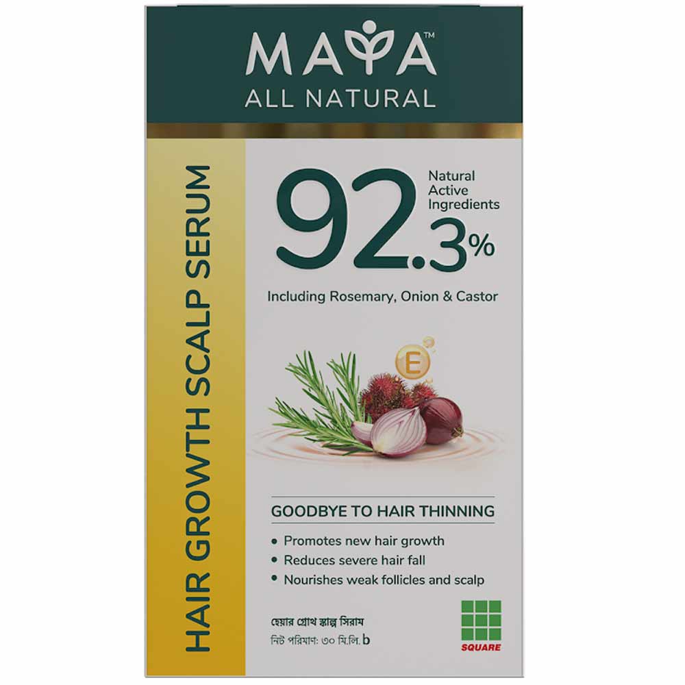 MAYA All Natural Hair Growth Serum formulated with 92.3% active ingredients Infused with Rosemary, Onion & Castor oil. When blood circulation to the scalp decreases during the Telogen phase, the follicle gradually becomes inactive. As a result, new hair does not grow anymore. Maya Hair Growth Serum’s 92.3% natural actives increase blood circulation to the scalp and provide the necessary nutrients. This activates the inactive follicle and takes the hair back to the growth phase (Anagen) and prolongs the phase. So, using Maya Hair Growth Scalp Serum gradually reduces hair loss and new hair grows.