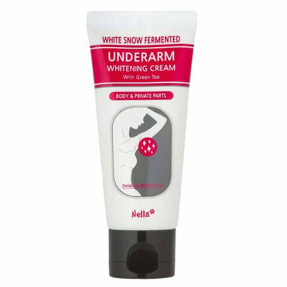 Nella White Snow Fermented Underarm Whitening Cream With Green Tea is a cream designed to lighten and brighten the underarm area. The cream contains green tea extract, which is known for its antioxidant and skin-soothing properties. The cream also contains fermented ingredients, which help to improve the skin’s texture and tone.The cream is formulated to be gentle on the skin and can be used by people with sensitive skin. It is free from harmful chemicals like parabens, sulfates, and phthalates, and does not contain any artificial fragrances or colors. The cream has a lightweight texture that absorbs quickly into the skin without leaving any greasy or sticky residue. With regular use, the cream helps to even out the skin tone and reduce the appearance of dark spots and pigmentation in the underarm area.
