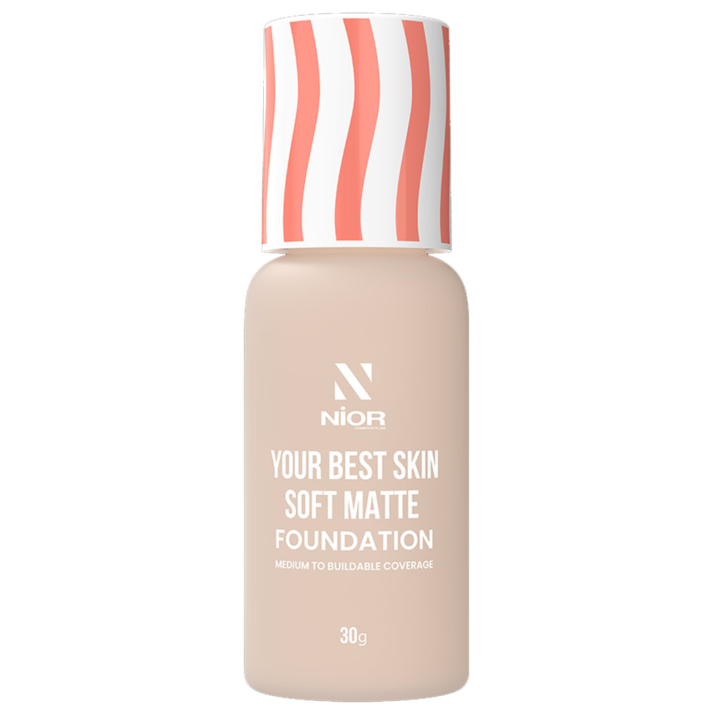 NIOR Your Best Skin Soft Matte Foundation offers buildable coverage, shine control, and a smooth, natural matte finish for all-day wear. Reveal your best complexion yet with NIOR Your Best Skin Soft Matte Foundation. Designed to deliver smooth, buildable coverage, this lightweight formula evens skin tone, blurs imperfections, and controls shine without feeling heavy or cakey. The breathable, soft matte finish creates a naturally flawless look that stays comfortable all day, making it ideal for both everyday wear and special occasions. It blends seamlessly into the skin, leaving a fresh, polished result that feels like your own skin only better. Available in a versatile range of shades to match different undertones, it’s perfect for pairing with NIOR Your Best Skin Perfecting Concealer for an even more perfected finish. Confidence starts with your best skin.