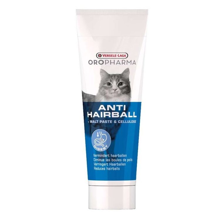 The Oropharma Anti Hairball from Versele-Laga is a paste for cats that helps prevent hairballs in the stomach and reduces the formation of new hairballs. This paste also contributes to the prevention of constant coughing up of hairballs, retching and vomiting.