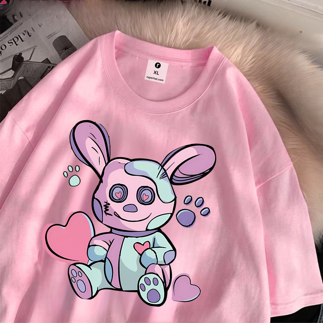 Rabbit Print Drop Shoulder T-Shirt