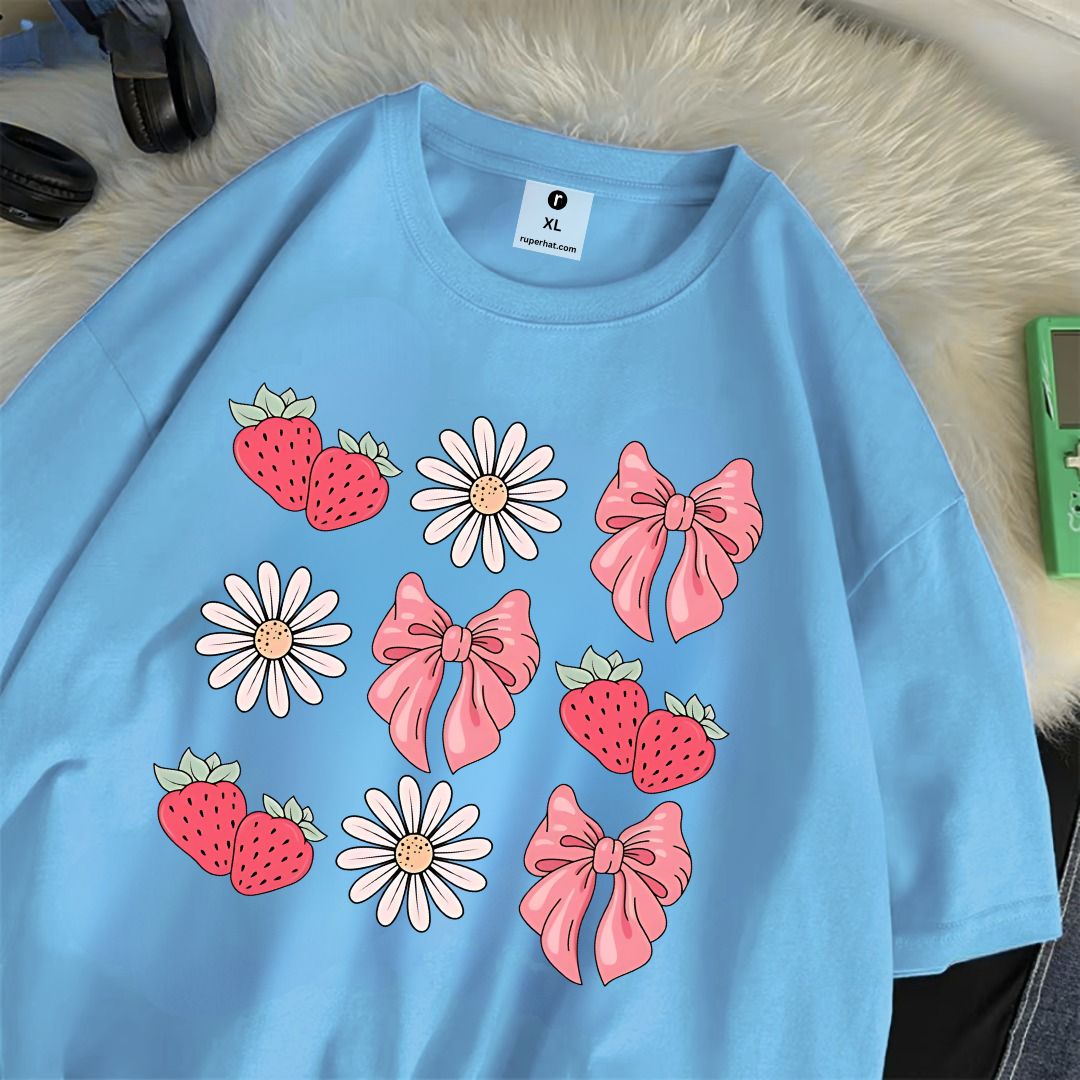 Be the first to review “Rose Bow Strawberry Sunflower Design Drop Shoulder T-Shirt”