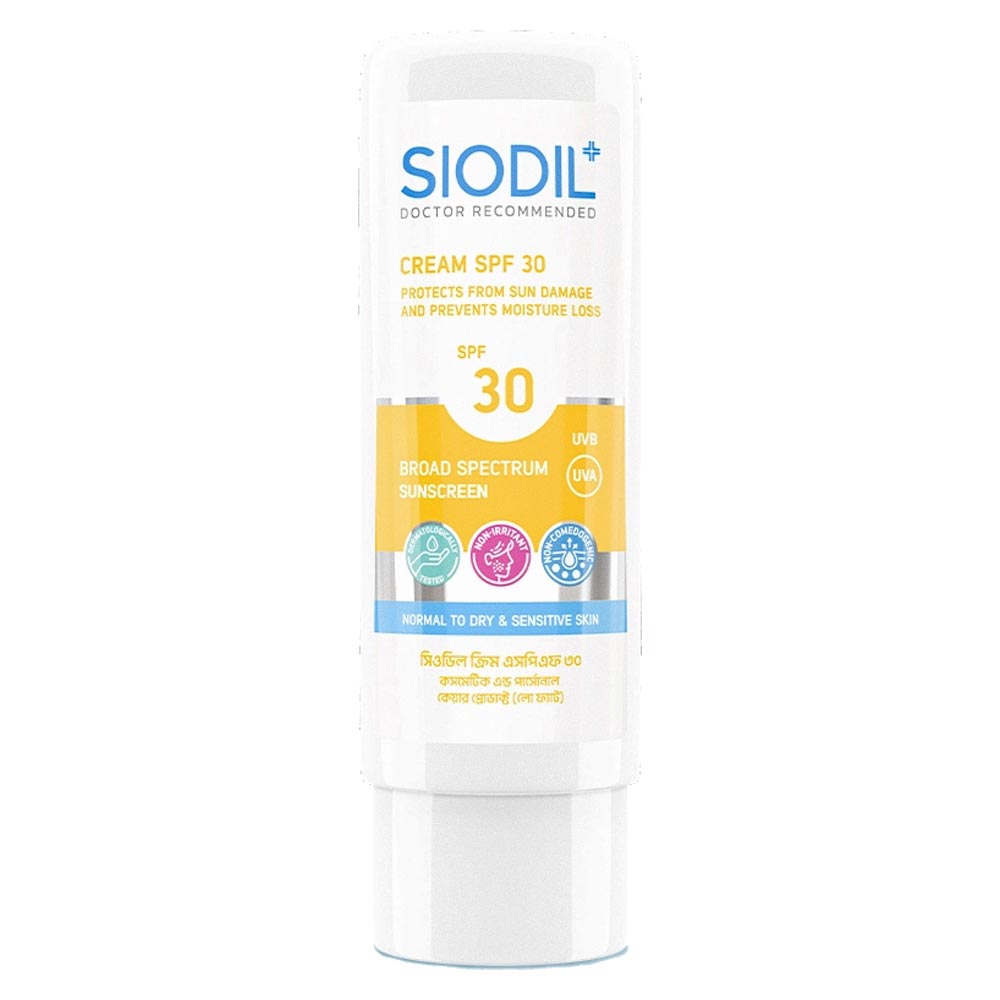 SIODIL Cream SPF 30 protects, hydrates, and soothes sensitive skin with broad-spectrum UV defense. Lightweight, non-comedogenic, and fragrance-free. Shield your skin from sun damage while keeping it calm, hydrated, and healthy with SIODIL Cream SPF 30. Specially designed for sensitive and acne-prone skin, this broad-spectrum sunscreen offers UVA and UVB protection without clogging pores or causing irritation. Formulated with mineral and hybrid sun filters, it delivers effective SPF 30 protection while maintaining a lightweight, non-greasy texture that absorbs quickly and leaves no white cast. Hydrating ingredients such as glycerin and vitamin E help keep the skin soft and moisturized throughout the day, making it ideal for year-round daily use. Enriched with soothing botanical extracts, SIODIL Cream SPF 30 helps calm redness, irritation, and inflammation making it perfect for post-treatment or reactive skin. The non-comedogenic and fragrance-free formula ensures it won’t block pores or trigger breakouts, even on oily or combination skin types. Whether you’re heading outdoors or sitting by a window, this SPF cream is your daily barrier against premature aging, sunspots, and environmental stress.