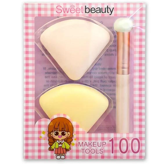 The Sweet Beauty Makeup Sponge and Brush Set includes versatile tools tailored for seamless application and blending of foundation, powder, and other cosmetic products.